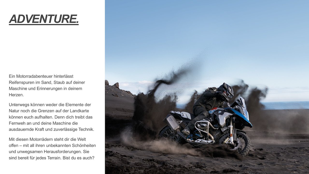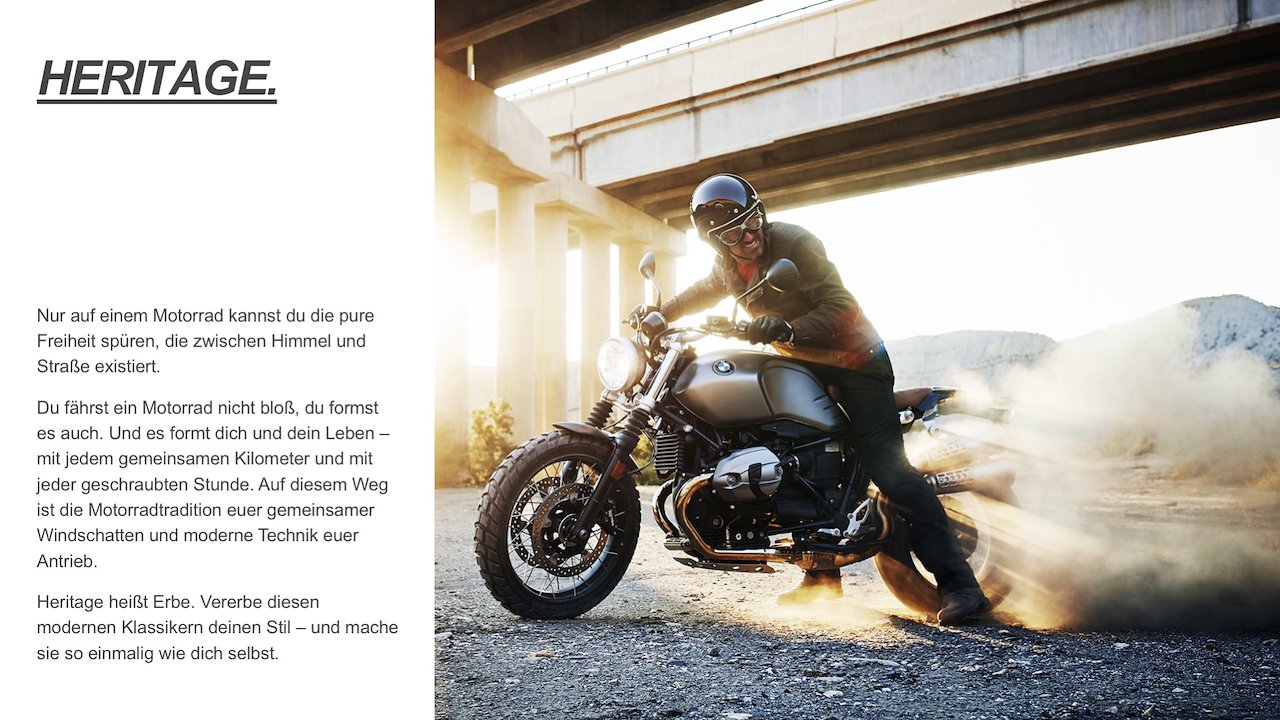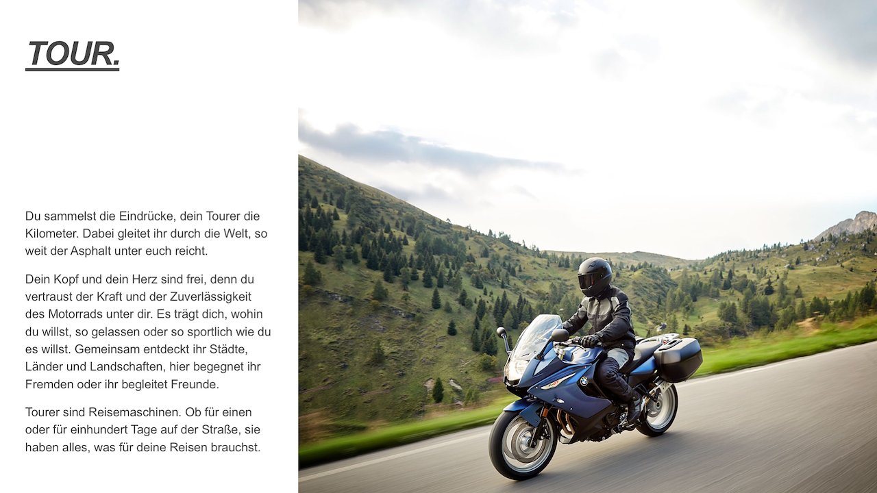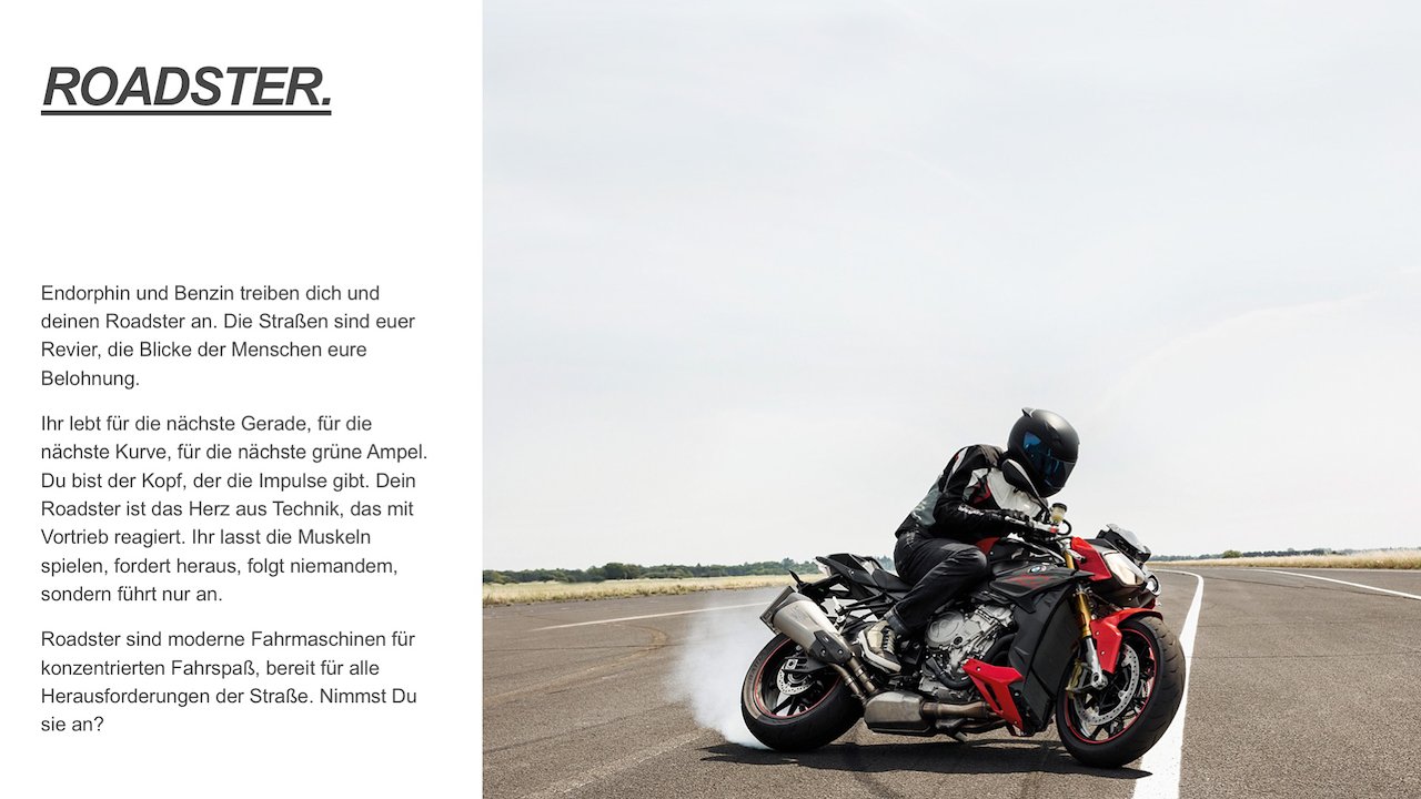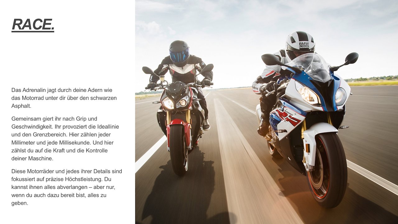 BMW Motorrad’s newly claimed mission is to “Make Life A Ride”. Regarding this, the Bavarian bike manufacturer asked me to write a description for each of their six vehicle classes – or so-called “experience worlds” – which then will serve as a blueprint for any following copy texts.