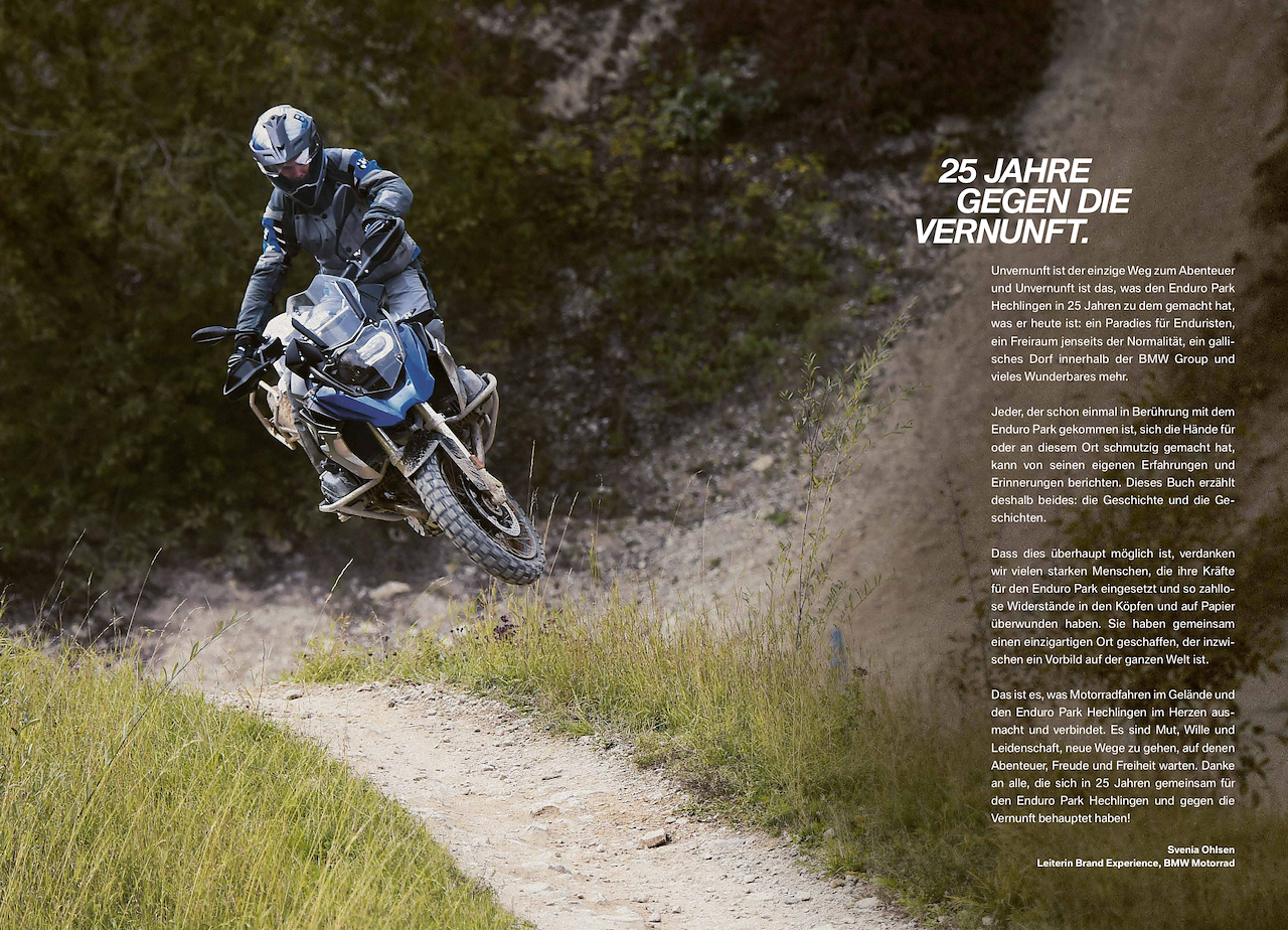 The “Enduro Park Hechlingen” is BMW Motorrad’s secret mecca for offroad riders. For its 25th anniversary, we captured the park’s history and stories in a book with more than a hundred pages that rebels against reason as this magical place itself.