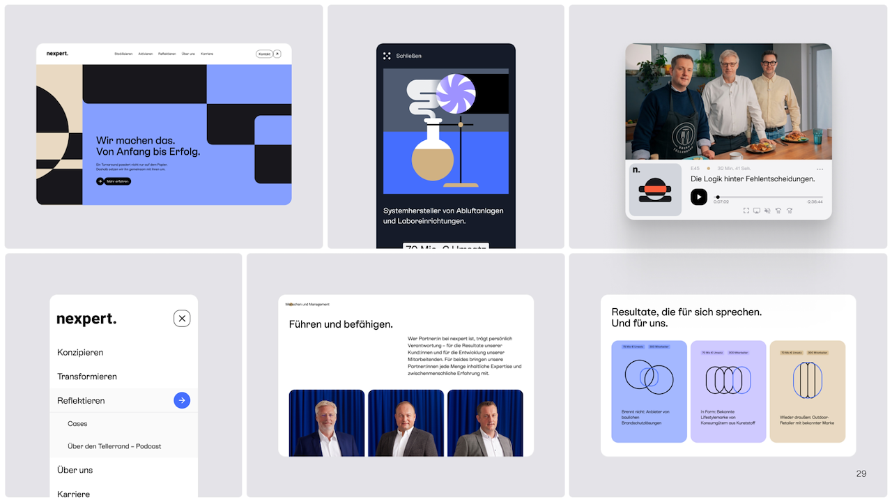 Nexpert is a consultancy that is specialized in the hands-on turnaround of struggling companies. They asked us to turnaround their brand with a sharpened identity, design and website.